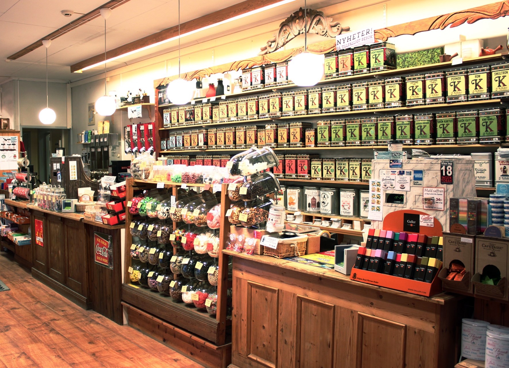 A large selection of tea is available. Coffee and sweets are sold in the old fashioned way over the counter.